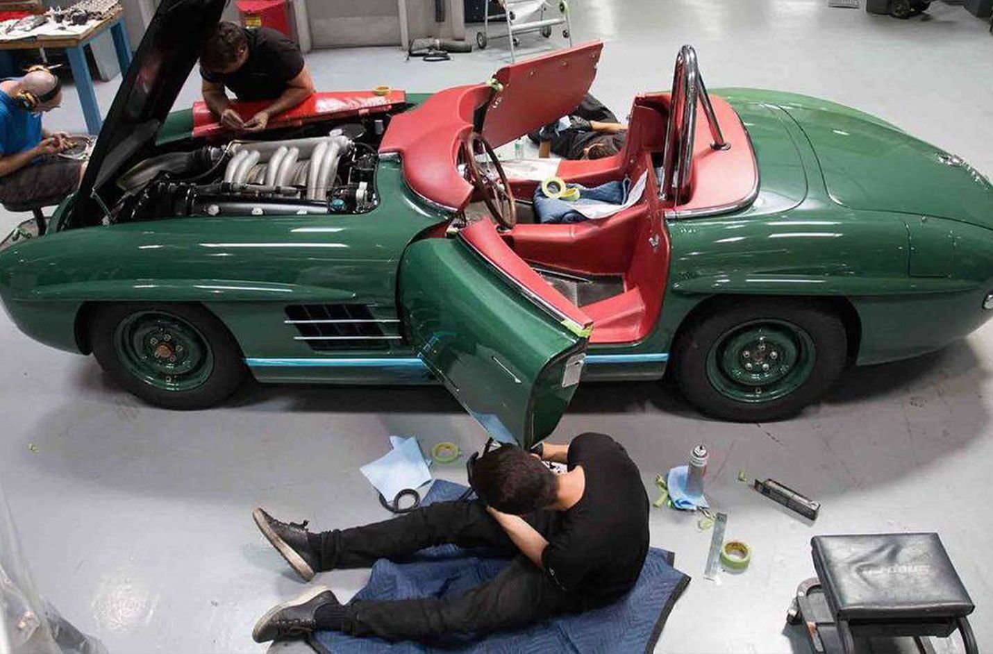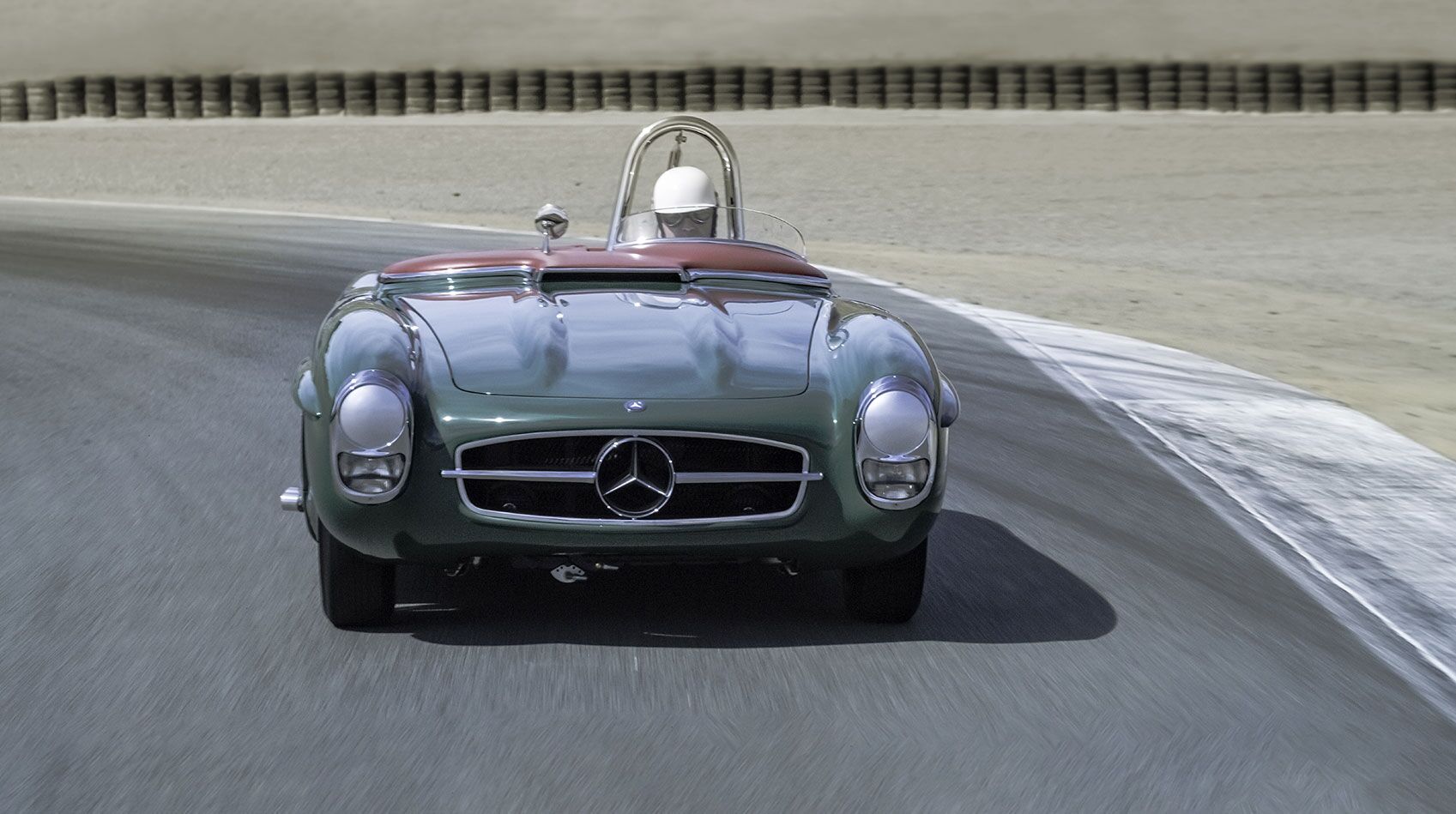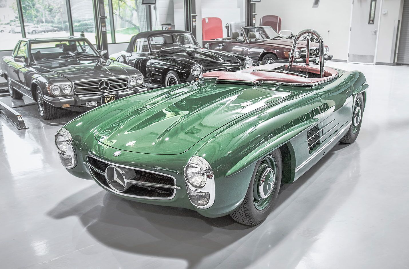| Built by the master craftsman of Mercedes-Benz Classic Center, this 300SLS has undergone a staggering restoration in celebration of the 300SL Roadster’s 60th birthday. Paying homage to the famed 300SLS piloted by Paul O’Shea in the 1957 Laguna Seca race, the Classic Center utilized their extensive archives to achieve a level of accuracy only Mercedes-Benz themselves can attain. Keen enthusiasts will note the striking details; from the hand-fabricated intake manifold to the elaborate body modifications, this 300SLS is truly like no other.
