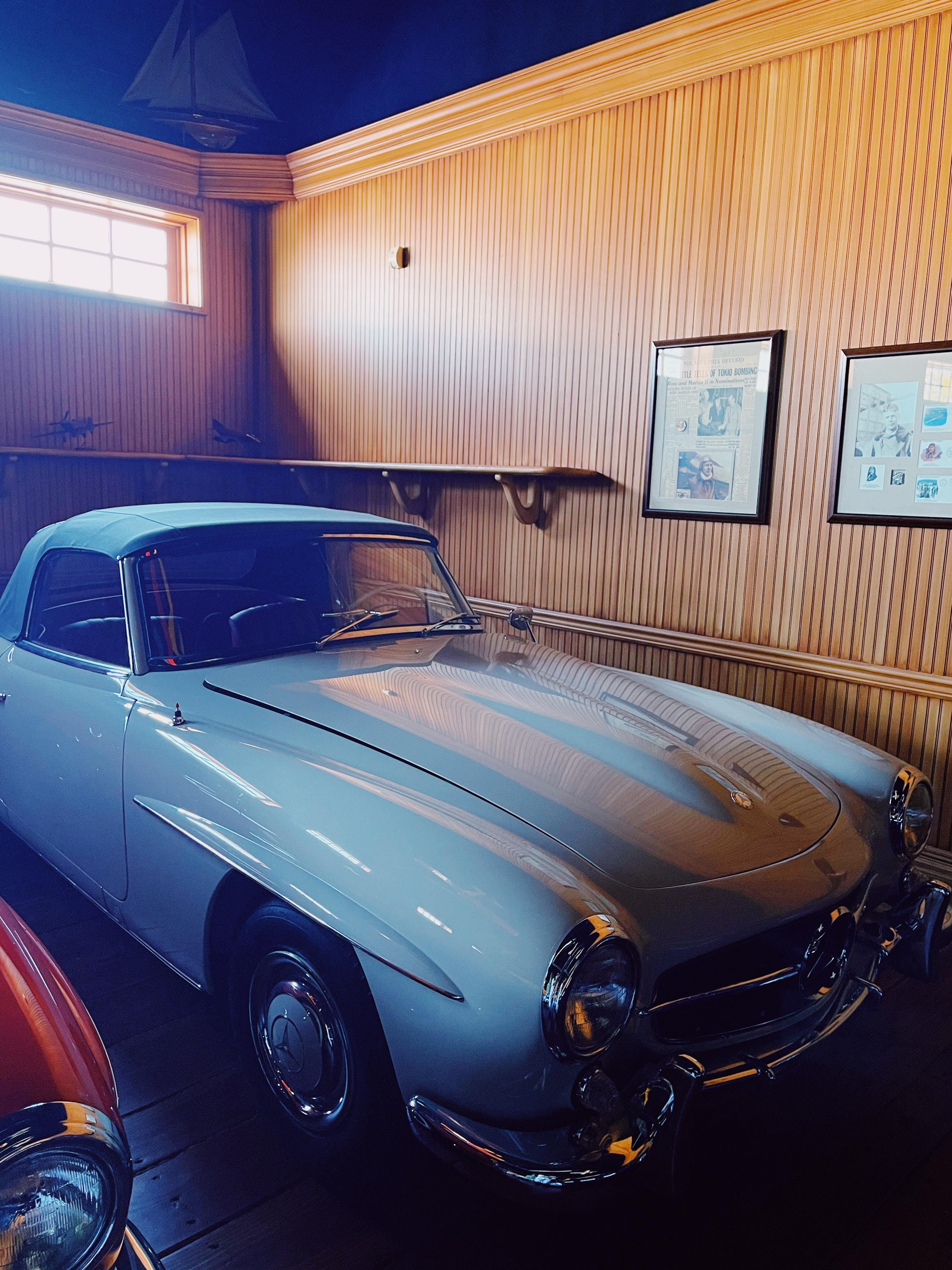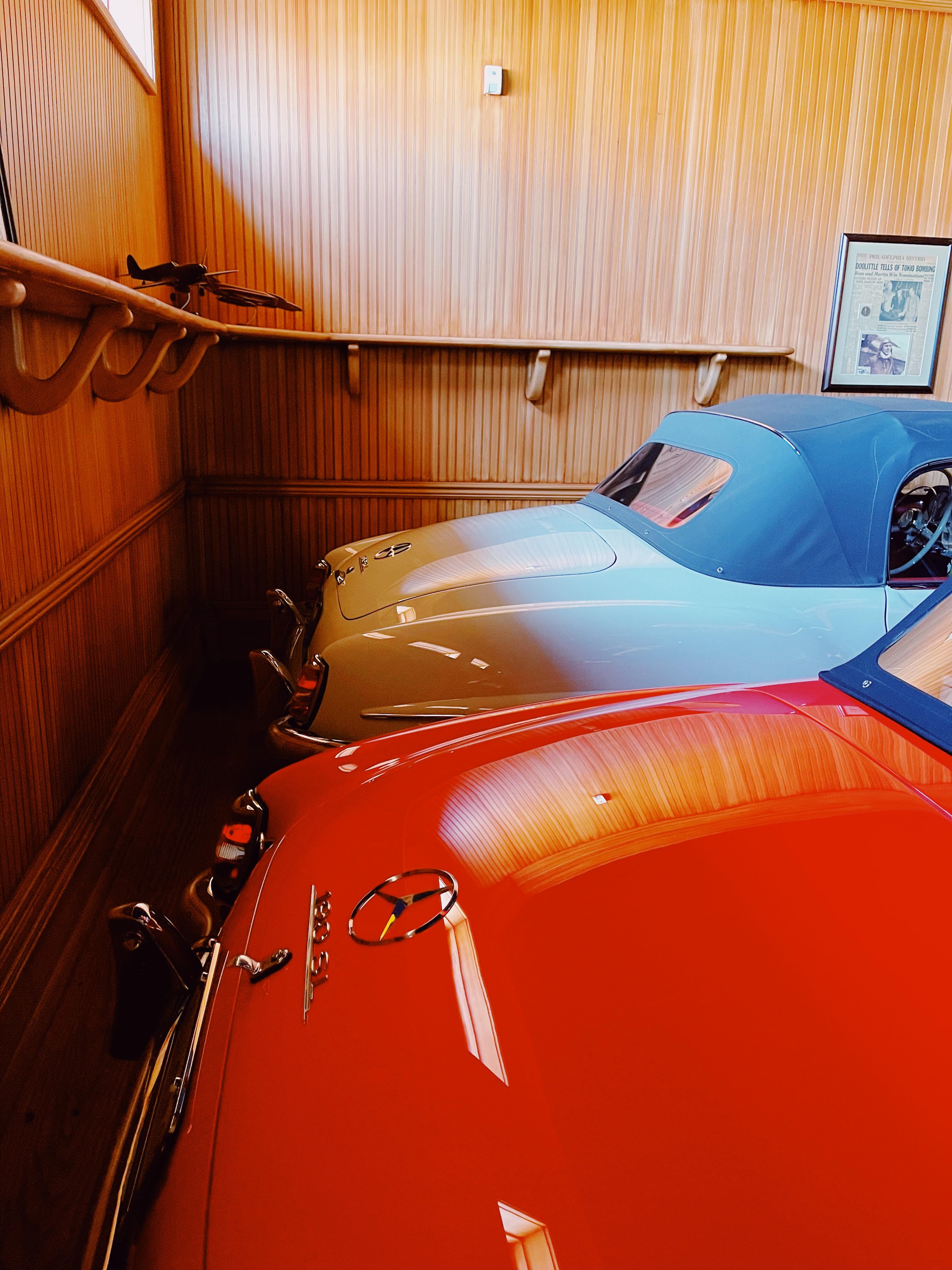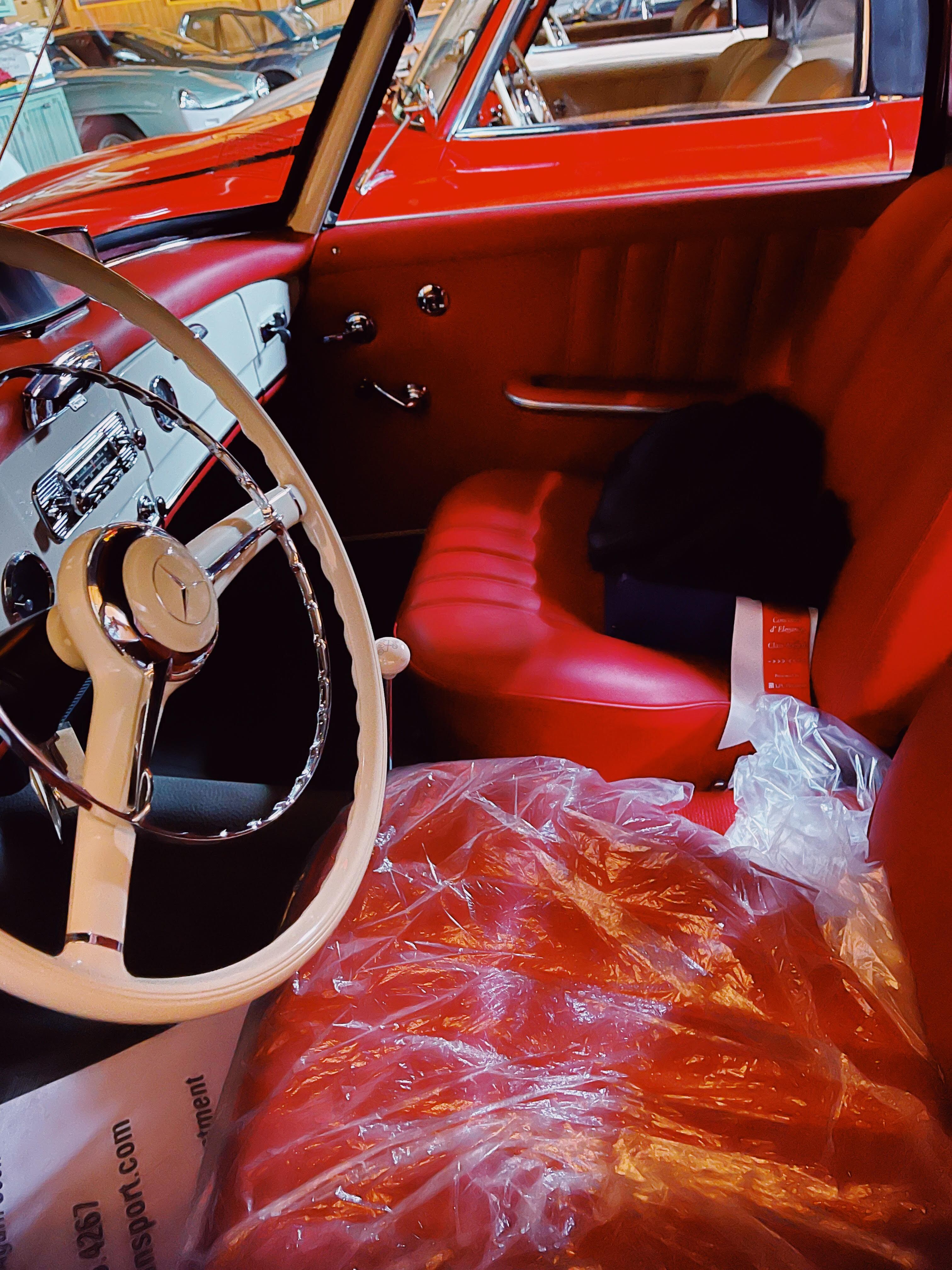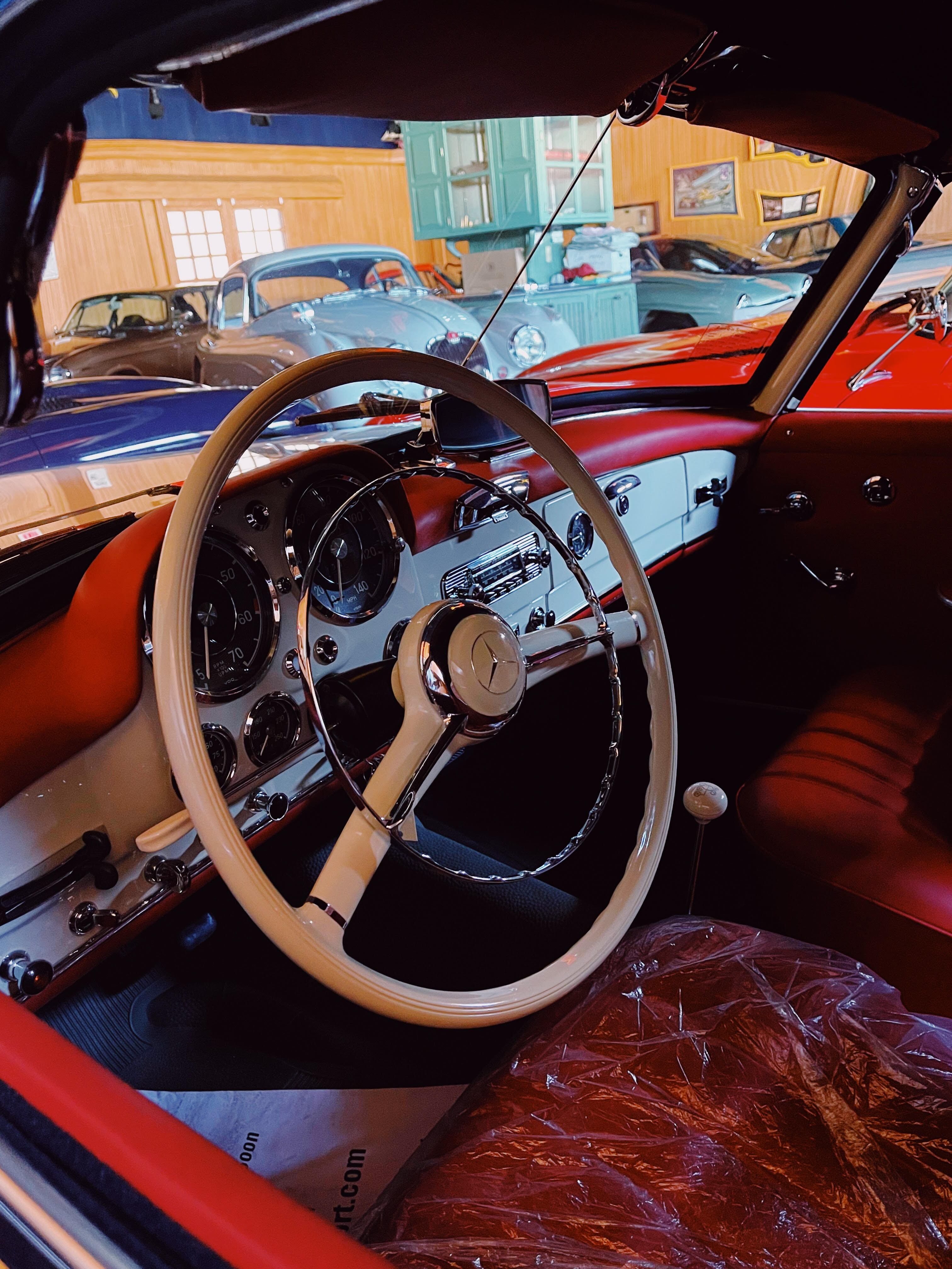 The 1963 ivory and red Mercedes Benz 190SL, this is the third 190SL in our collection that was purchased and restored from the Mercedes Benz Classic Center. The Pagoda, which is another name for this vehicle had a production number of 25,881 through the years of 1955 to 1963. This is a special vehicle as it was built in the last year of production.