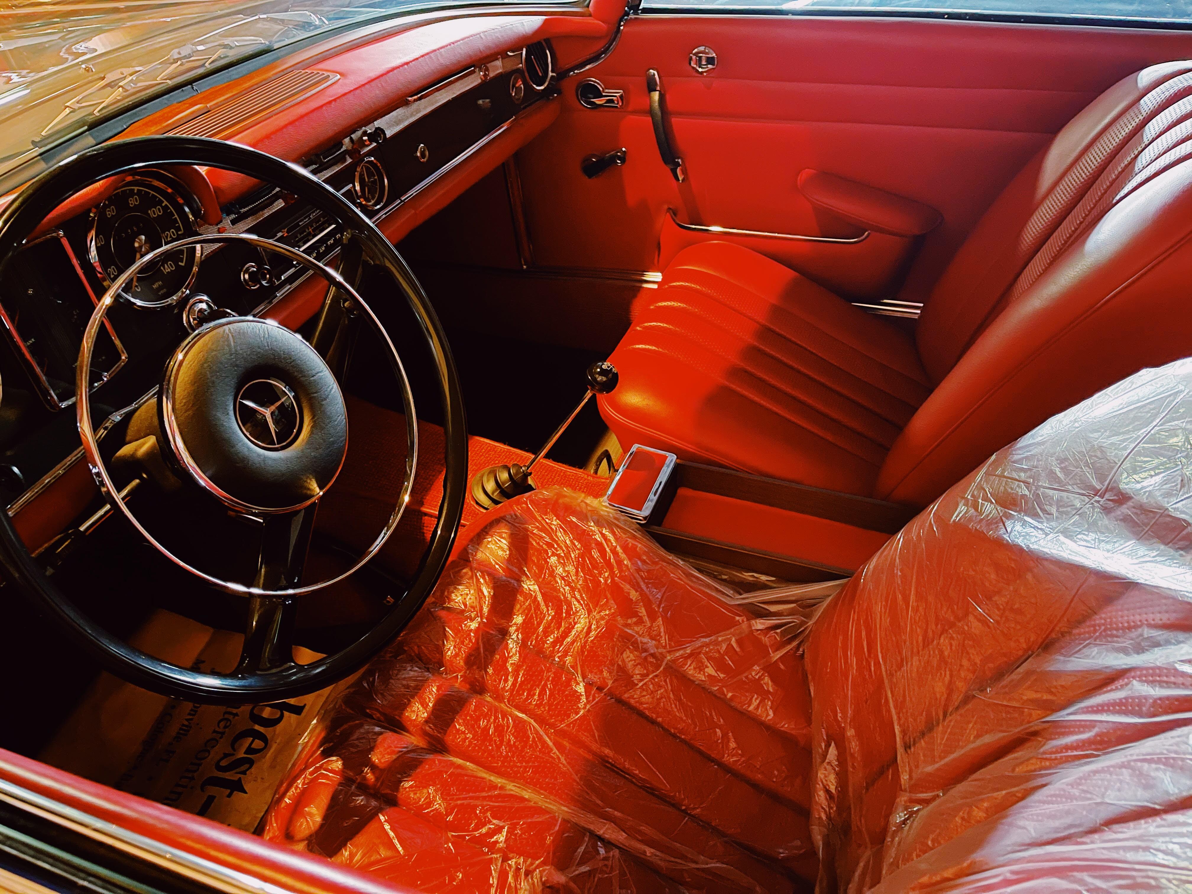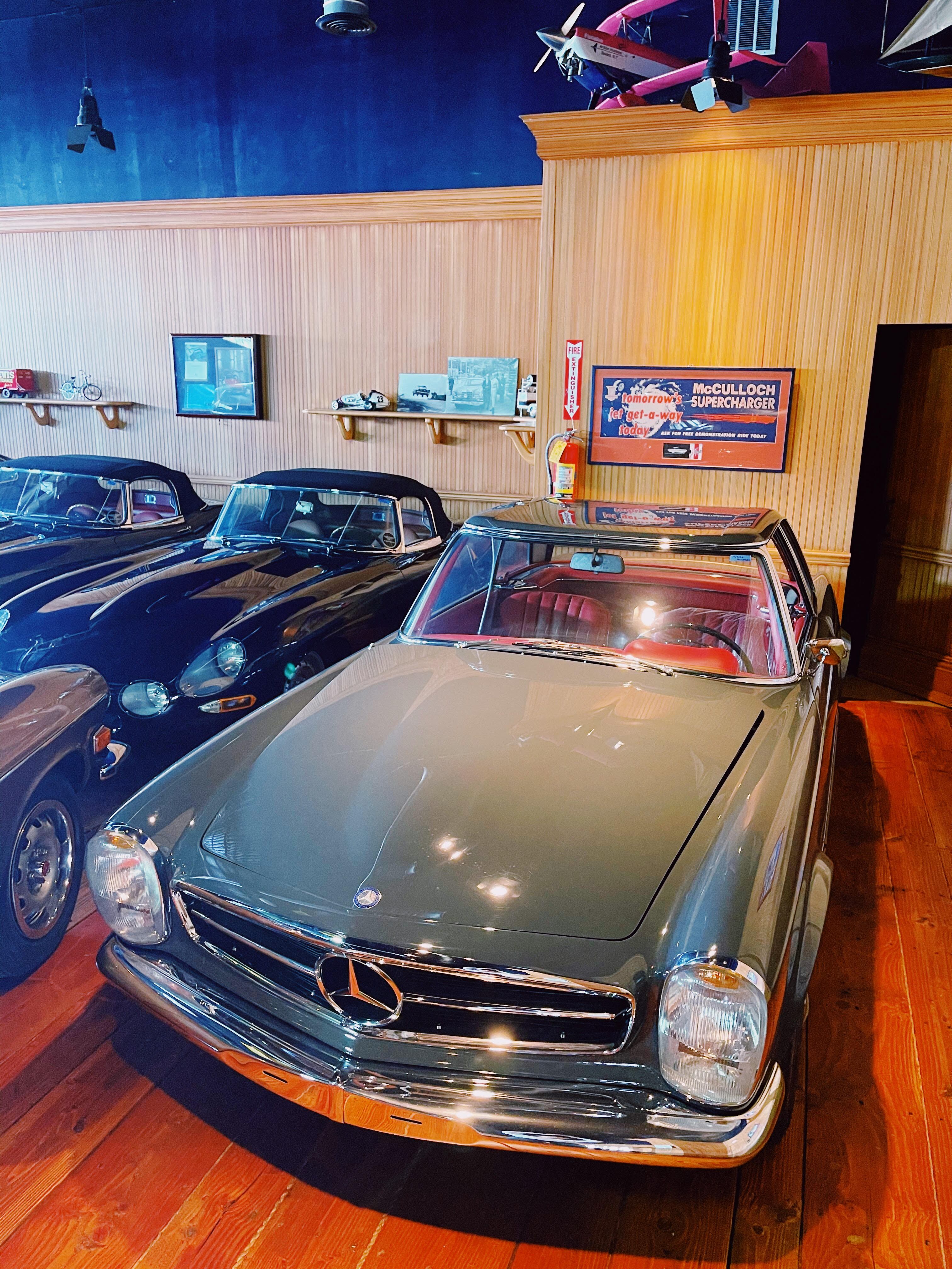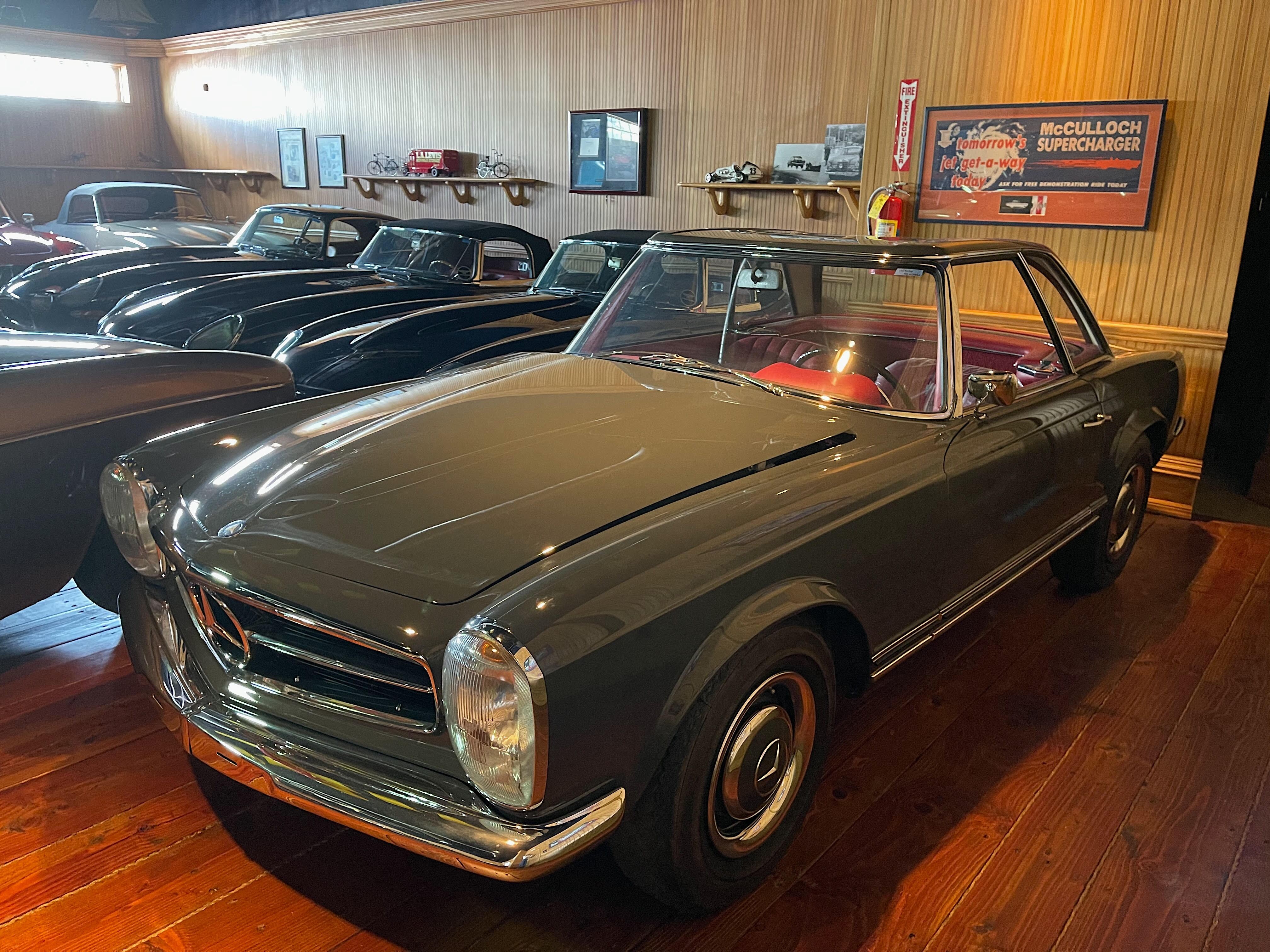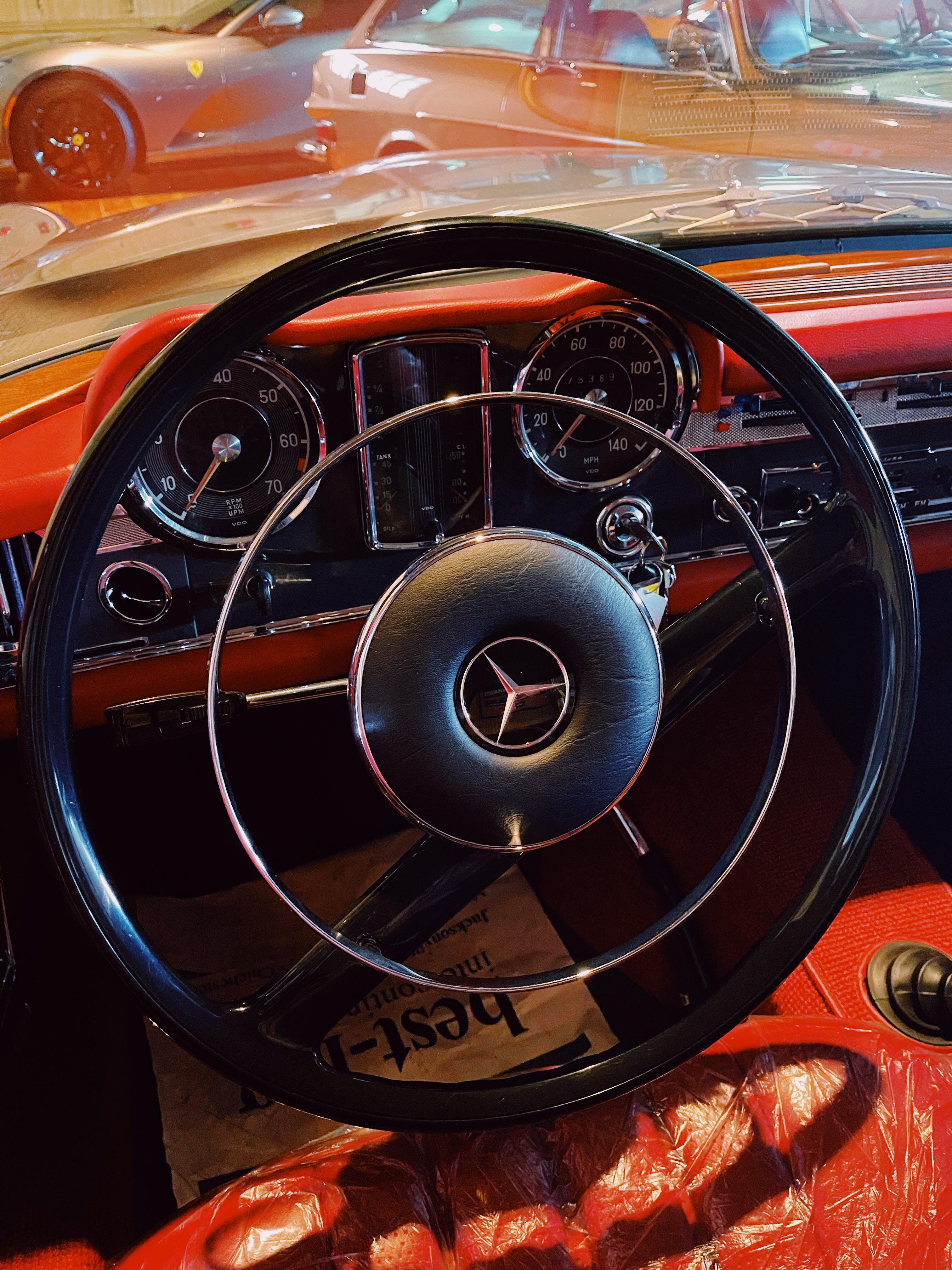 The last 230SL in our collection is the 1963 gray Mercedes Benz 230SL. Purchased from Mercedes Benz Classic Center, who did a full restoration of the vehicle. The W113, pagoda was produced from the years of 1963 to 1967. This special vehicle which was produced in the first year of production. The reason why they were able to make this model so light is because of the aluminum they used on the vehicle.